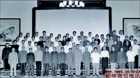 ▲1977年,由邓小平同志主持的全国科学教育座谈会在北京召开。图为全体参会人员合影留念,第三排左八为查全性。