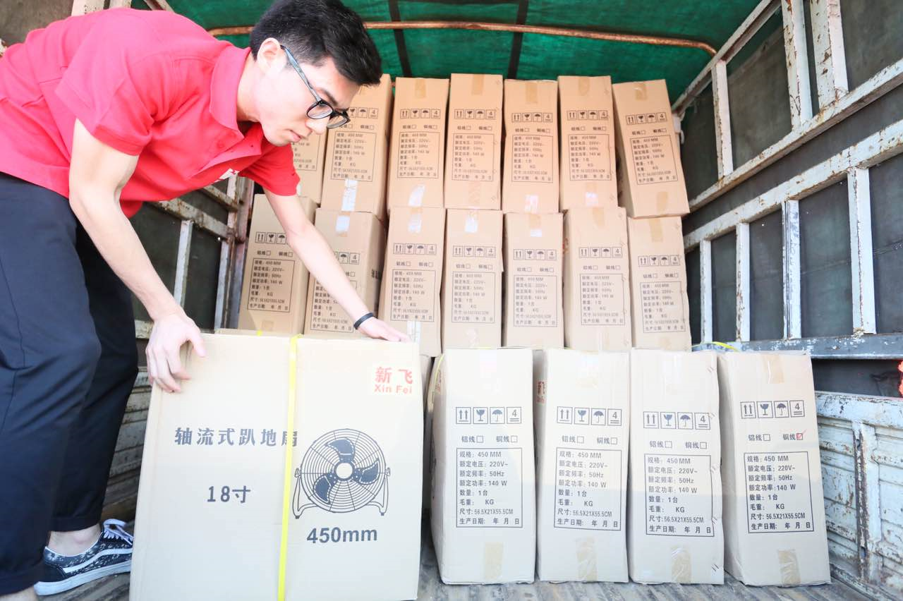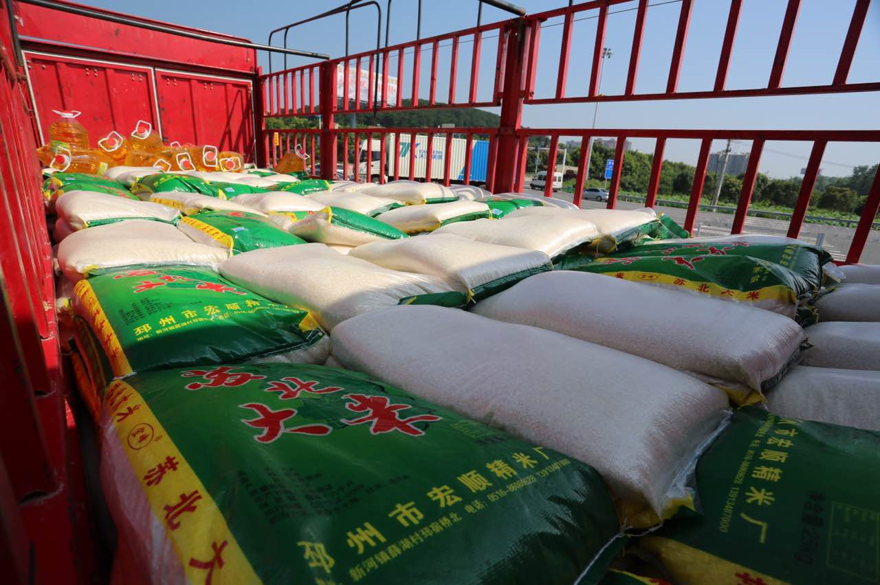 【我们风雨同舟】交广人携爱心企业送上必需品:交广人集聚一大批爱心企业,携带米、面、油等必备食物;电风扇、驱楚天蚊液、洗手液、消毒液等急缺物资,载满了一辆辆爱心车,更装满了人们的心田。