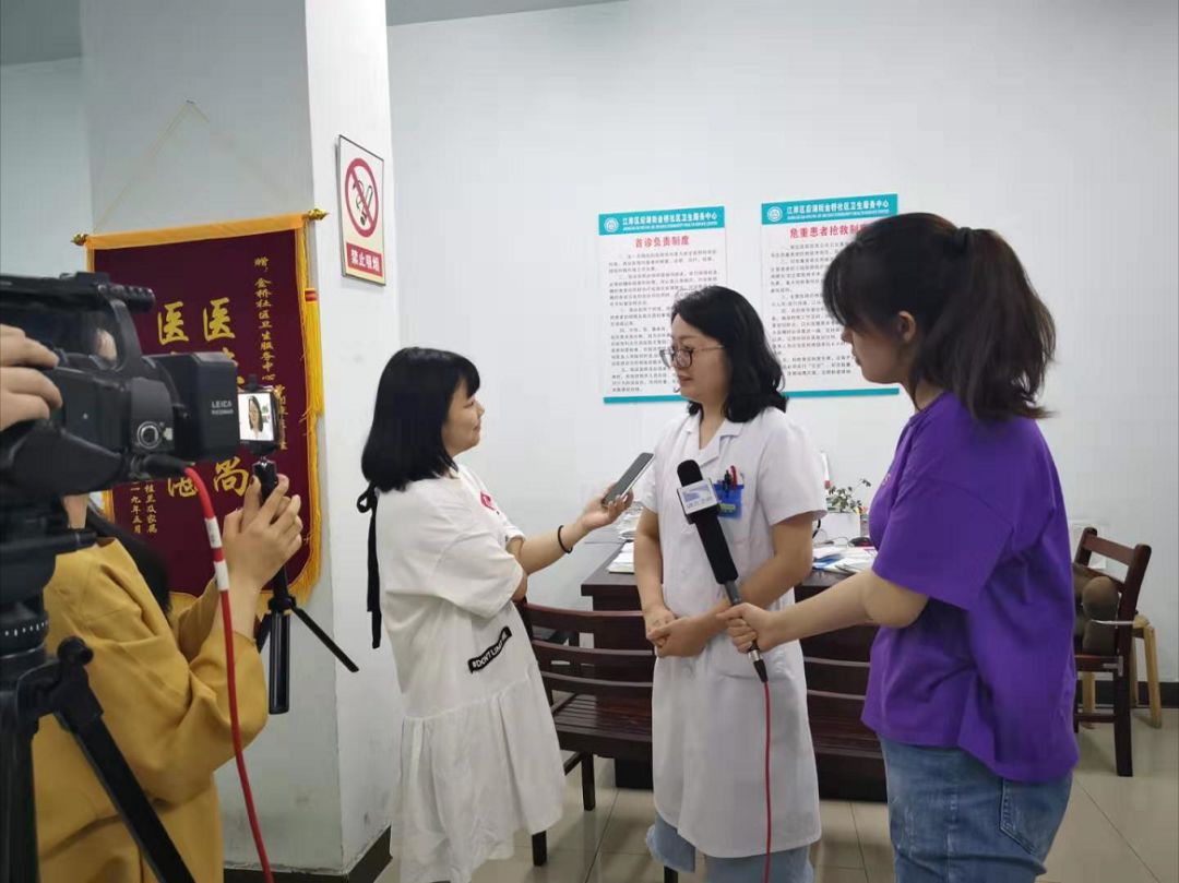 融媒体采访团记者安艺(左)、肖肖(右)与王争艳医生合影