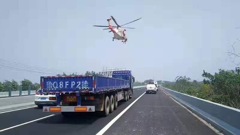 120赶到现场进行先期救治后认为情况紧急,需要直升飞机空地接应。 民警立即拦停过往车辆,对现场进行安全打围,确保直升飞机有安全的救援条件。随后金汇通航公司救援直升机赶到,在12:00时及时将驾驶员汪某送上直升飞机,紧急送往湖北省人民医院东院区紧急救治。
