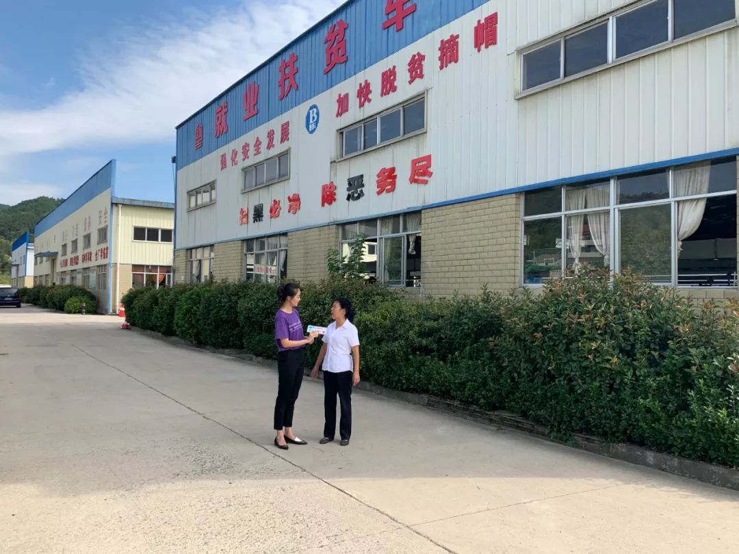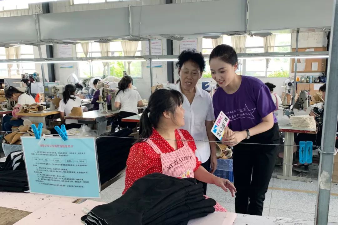记者孙雯(右一)和王金初(中)一起采访工厂职工