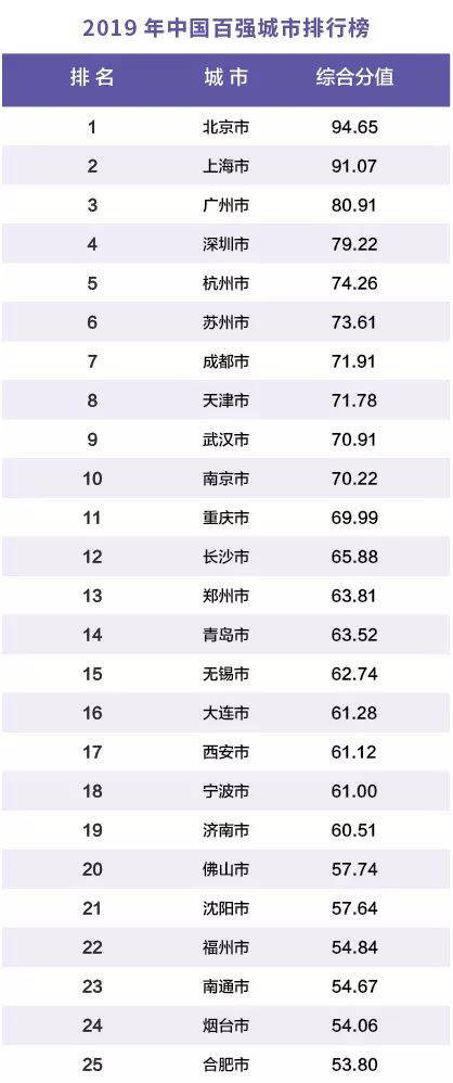 近日,华顿经济研究院在上海发布“2019年中国百强城市排行榜”。根据排行榜,北上广深稳居前四,综合实力最强,其次是杭州、苏州、成都、天津、武汉和南京。湖北共3个城市上榜,分别是武汉、宜昌、襄阳。