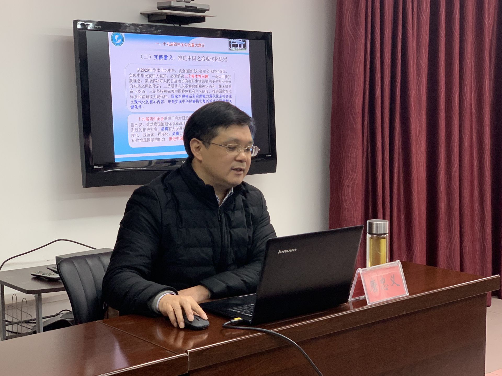 唐忠义以《国家治理现代化的科学指南》为题,从十九届四中全会的重大意义及国家治理现代化的制度基础、重要任务、实践要求四个方面对全会精神进行全面系统精准解读,既有宏观阐述又有微观解读,既有历史回顾又有现实分析。