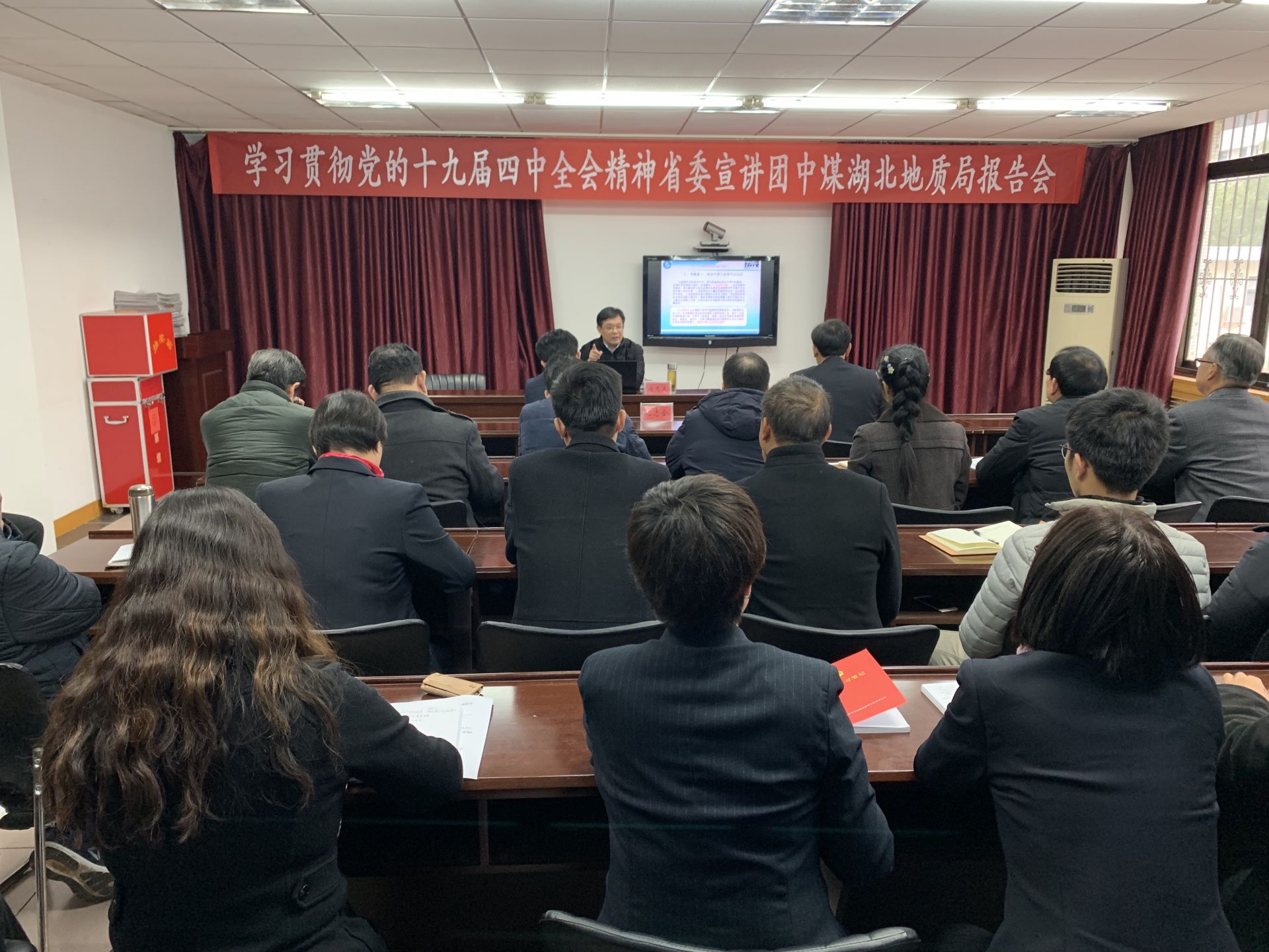 根据湖北省委统一部署要求,为推动学习贯彻党的十九届四中全会精神往深里走、往心里走、往实里走,11月20日下午,武汉科技大学马克思主义学院院长,湖北意识形态建设研究院院长,教授,智库首席专家唐忠义到中煤湖北地质局集团有限公司宣讲十九届四中全会精神。