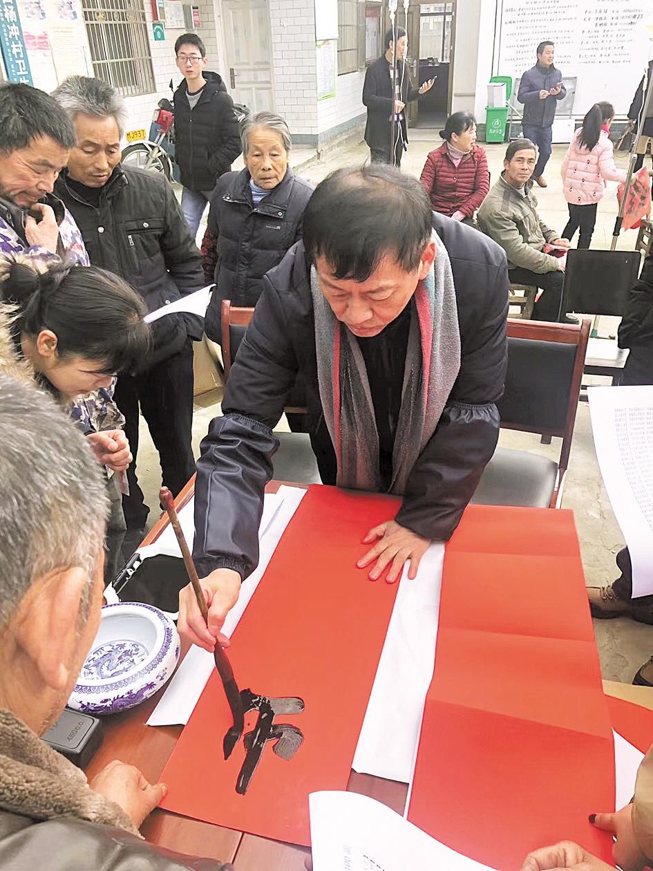 风和日丽天作美,文化惠民正当时。1月13日一大早,湖北美术馆“红色文艺轻骑兵”小分队来到罗田县凤山镇白杨冲村,开展“我们的中国梦——文化进万家”文化惠民活动,为大家现场送春联、写春联、剪窗花、做面塑、送书籍,给当地群众送去了一道丰盛的文化大餐,也送去了浓浓的年味儿和新春的祝福。