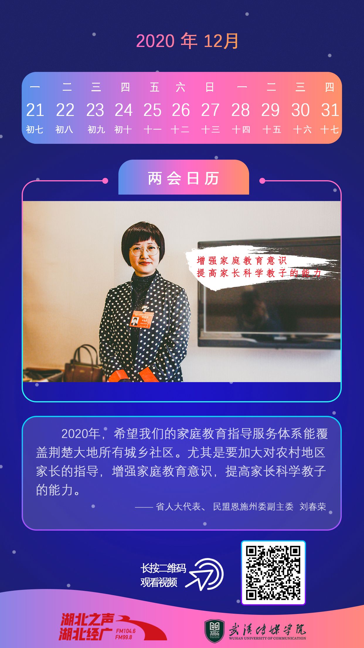 2020年,希望我们的家庭教育指导服务体系能覆盖荆楚大地所有城乡社区。尤其是要加大对农村地区家长的指导,增强家庭教育意识,提高家长科学教子的能力。