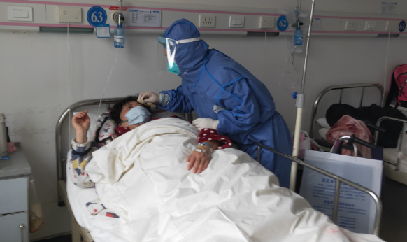 据3病区主治医生平懋华介绍,今年57岁的赵巧英,因咳嗽、体温39.3℃,高热12天,呼吸困难2天,全身乏力。门诊输液加口服药物观察4天后,高热直达40℃,核酸检测呈阳性,继续服用口服药并给予对症支持治疗后病情未好转,求助社会后被武汉市汉阳医院收到呼吸内科三病区63床进行治疗。
