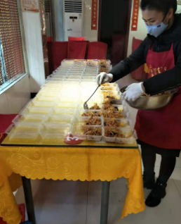 随着武汉疫情的发展,去餐厅里吃饭的人越来越少,外卖订单却在翻倍。正月初三,一份爱心订单通过饿了么平台在陈红梅的餐厅下了25份盒饭,送给附近武汉第六医院的医护人员,陈红梅愈发庆幸这个时候没有“撤退”。如今,小小的餐厅更是承担起了附近几家隔离患者酒店的送餐服务:“目前每天会给隔离患者送每天五、六百份热饭热菜,都是我们自己做好了自己送过去,有些志愿者也很体谅我们,我们送多了送不过来,他们就自己过来取。”