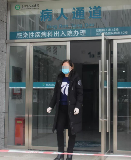 2月12日上午,49岁的女患者走出当阳市人民医院感染性疾病楼大门,这是当阳市第三例新冠肺炎确诊患者康复出院。