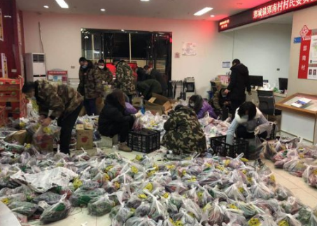 全国多地爱心人士的捐赠新鲜蔬菜运来后,郢城镇郢南村的干部又当起了“分拣员”和“配送员”,仔细分装蔬菜、大米,核对贫困户名单,挨家挨户为小区封闭管理的贫困户送上新鲜蔬菜和大米,为贫困户缓解疫情中吃饭难的后顾之忧。
