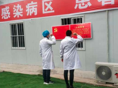 在连续奋战近30个日夜后,枝江市人民医院临床内科党支部在感染应急六病区举行了一场庄严的“火线入党”仪式。新党员詹天佐高举右手,表情庄重,面向党旗郑重宣誓。