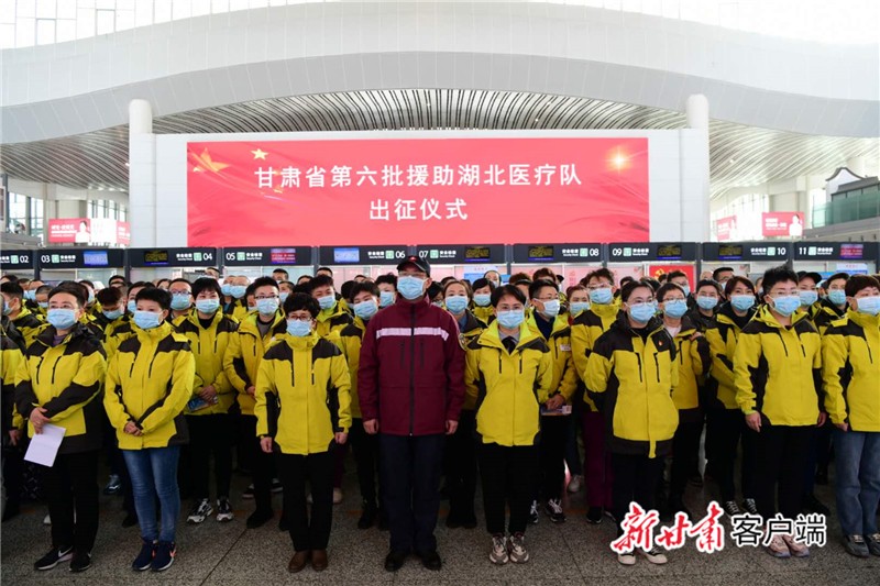 甘肃省第六批援助湖北医疗队出征仪式今天上午在兰州中川国际机场举行,172名队员集结到位,即将奔赴湖北。