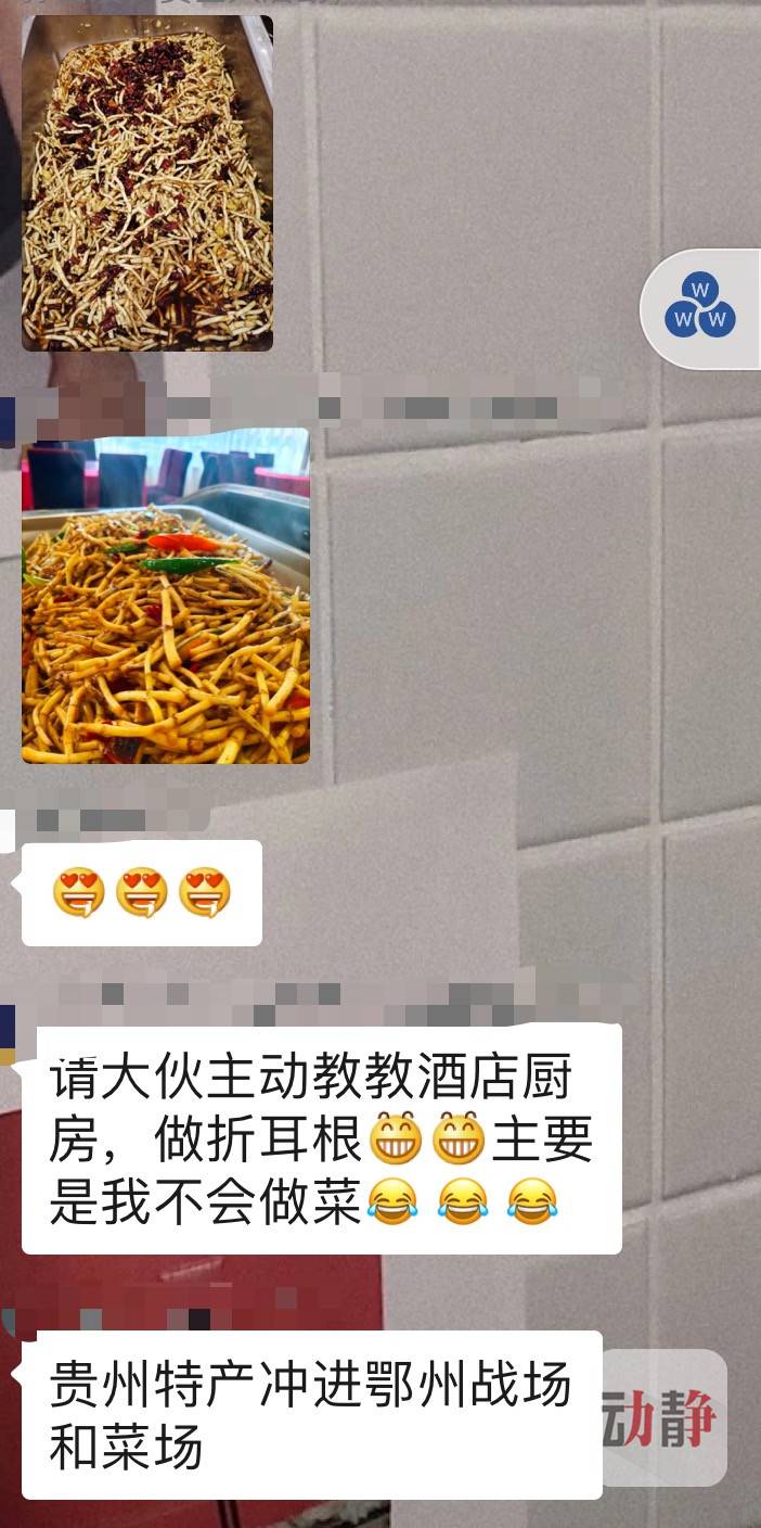 2月25日,几张折耳根端上了鄂州餐桌的照片,发到了贵州援助鄂州医疗队微信工作群。见到了久违的家乡味,队员们有发表情点赞的,有说“蛮好吃”的,有指导酒店大厨加点肉的,场面好不热闹。