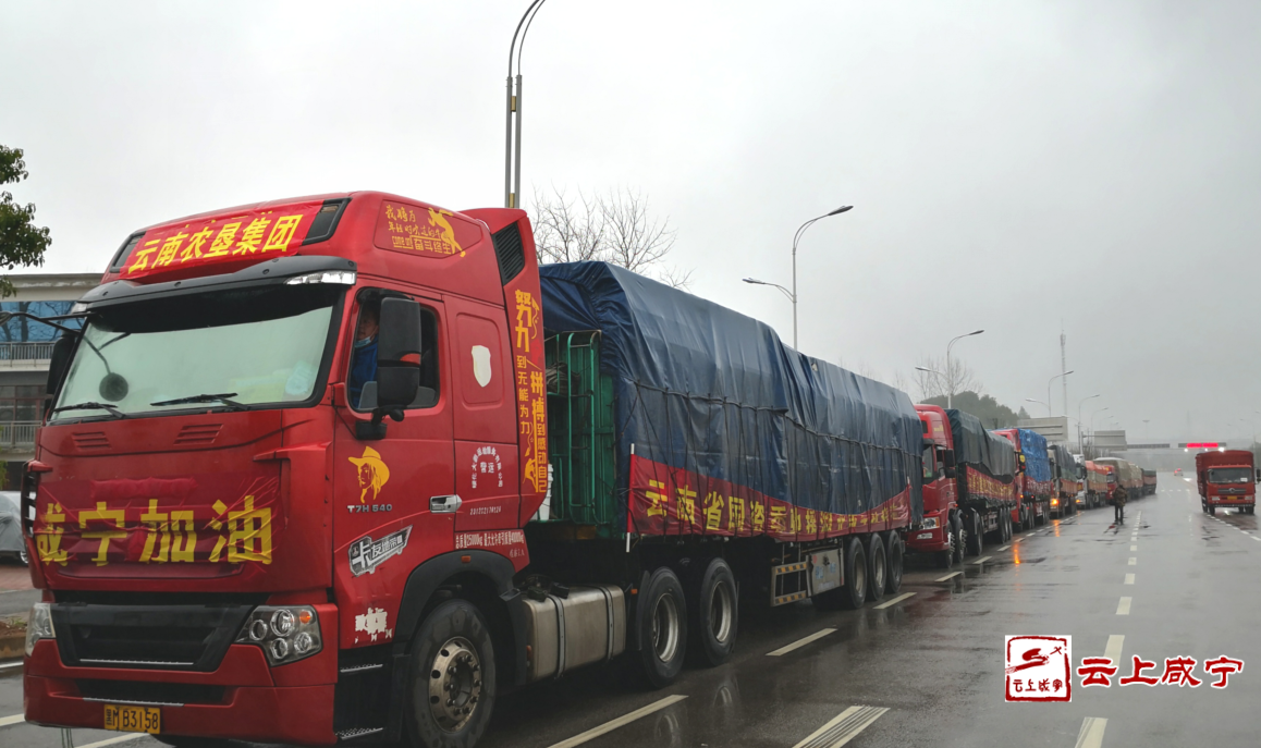 28日上午,云南省28辆载满物资的卡车抵达咸宁,为咸宁市送来疫情防控物资。