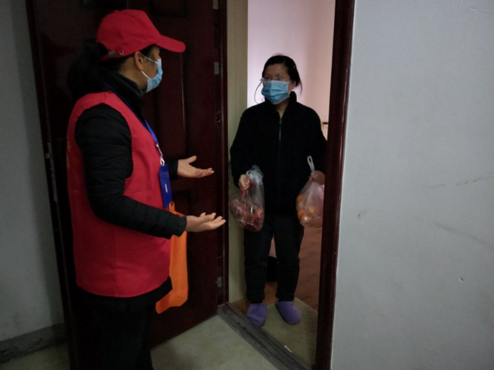 小杨居住的那个楼栋由社区居委会委员高春玲包保负责。从年前24号开始,高春玲就家家户户敲门,隔着门缝隙宣传疫情防控知识,给居民发放宣传单、口罩、消毒水等。当她在门缝里看到一个大肚便便的孕妇手接她的宣传单时,高春玲作为社区计生干部,职业敏感性让她忍不住多聊了几句,这一聊才知道了小杨的具体情况。看着眼前跟她女儿差不多大的姑娘,高春玲非常感慨,当天是年三十,她对小杨说:“小杨,你这么大肚子一个人居家,你不要开火做饭了,我从社区或者家里给你带饭吃,你不介意的话,疫情期间你的伙食我来负责,不能亏了肚里的毛毛,还有,我的电话你要记下,从现在起,你生活上有任何困难,你要第一时间电话我......”小杨听到这番话瞬间泪目,这两日堆积的内心的不安和忧虑瞬间消散了一大半。她是个坚强的姑娘,她谢绝了高春玲每日给她送饭的好意,她说她现在虽然怀孕已7个月,但是目前独立照顾自己不成问题,有需求会立即跟她联系。她说高春玲是社区带来的温暖使者,除夕晚上,高春玲把自己家现包的饺子送到了小杨手里。