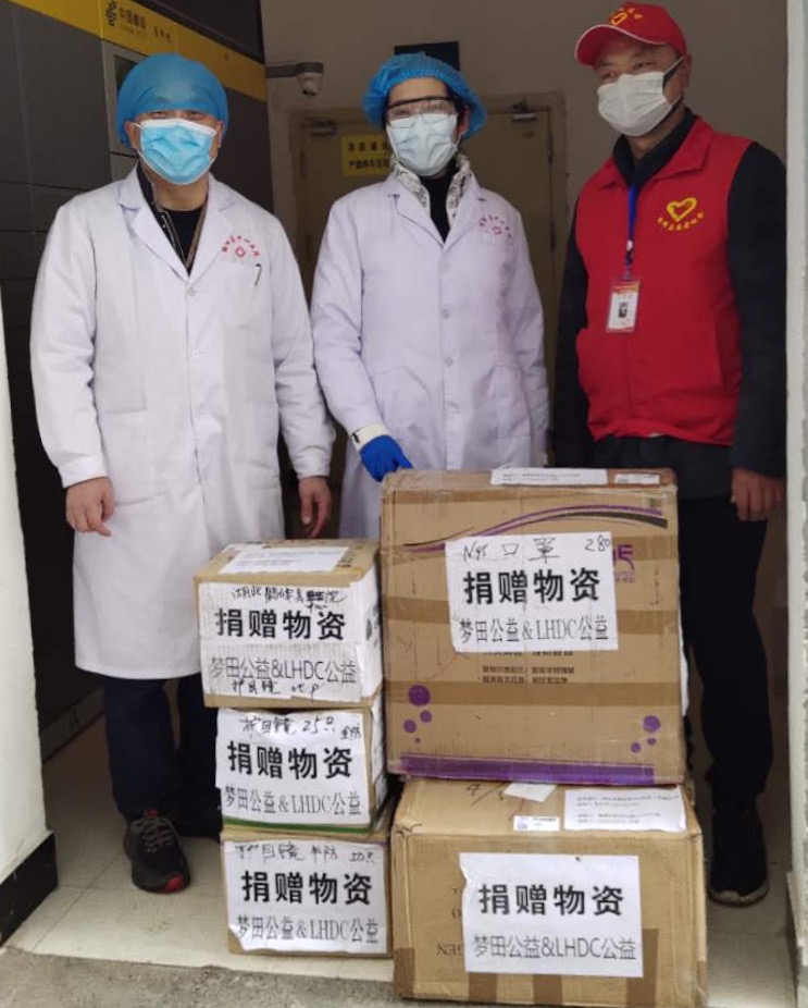 该公益组织于2月26日向鹤峰县中心医院捐赠了N95口罩280个、丁腈手套1500双、护目镜110副。