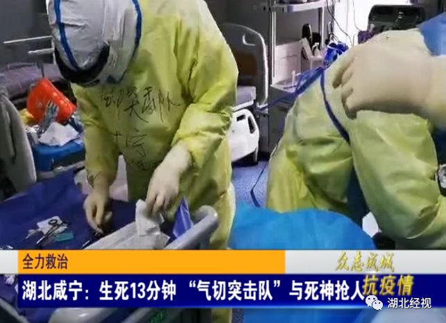 此时,参加手术的所有医护人员都松了一口气,时间就是生命,面对病毒传染的高风险,咸宁市中心医院“气管切开突击队”没有退缩。与死神的较量,他们赢得了胜利。