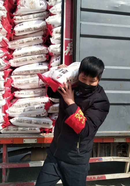 (疫情期间,党员冲锋在前,既当配送员,又当搬运工)