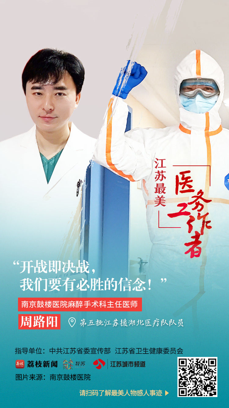 2020年2月8日,南京鼓楼医院接到命令,要派出56名医生护士组成医疗队紧急支援武汉。作为一名老党员,同时也是长期分管科室重症监护病区的主任,周路阳第一时间请战上前线。