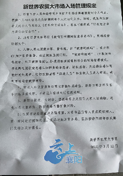 推动菜市场等人们生活必需商业场所开业,是有序建立与疫情防控相适应生产生活秩序的重要一环。今天上午,襄阳樊城松鹤路新世界农贸市场恢复对购物市民开放,这也是市区首家经批准正式复业的菜市场。