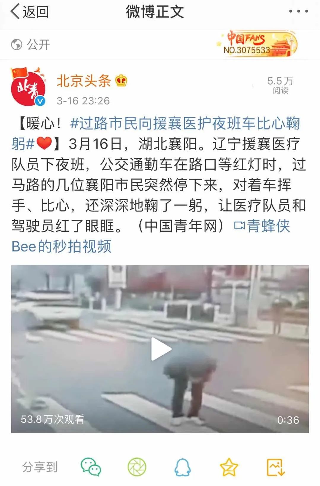 一位市民更是面向通勤车恭恭敬敬地来了一个90度鞠躬。