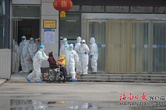 湖北洪湖出院患者与医护人员道别。海南日报记者袁琛 摄