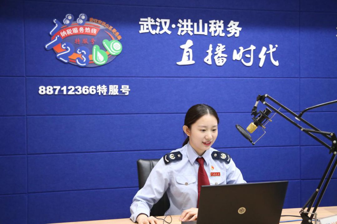 武汉市洪山区税务局工作人员在斗鱼直播间讲解国家针对此次疫情出台的税费优惠政策。除了网上直播,该局在防疫期间还组建了40人的线上中心服务团队,通过“洪山税务”微信公众号对外公布8个纳税人QQ群和43部咨询电话,为辖区纳税人提供24小时在线的咨询解答服务。