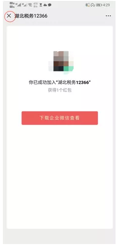 3.成功加入后,出现如下页面,无需下载“企业微信”app,直接点击左上角的“X”,关闭页面退回微信主界面。