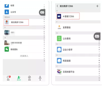 5.进入微信通讯录打开湖北税务12366,即可使用智能12366咨询功能和其他应用功能。