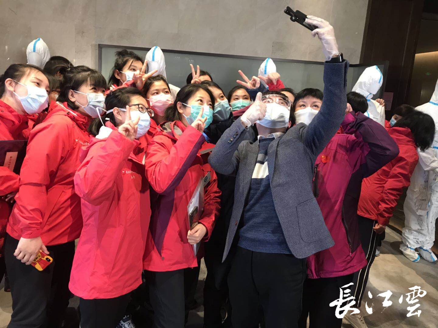 “太像了,跟本人没什么区别,我要拍下来然后回去给儿子看”,医疗队员杨馥睿激动地边与自己的画像合影边说道。人群中,杨馥睿的寸头格外抢眼,为了方便穿防护服,在到达武汉的第四天,支援雷神山医院之前,她就把头发剪短,让杨馥睿没想到的是,自己现在的样子会以这样的特别的方式被记录下来。