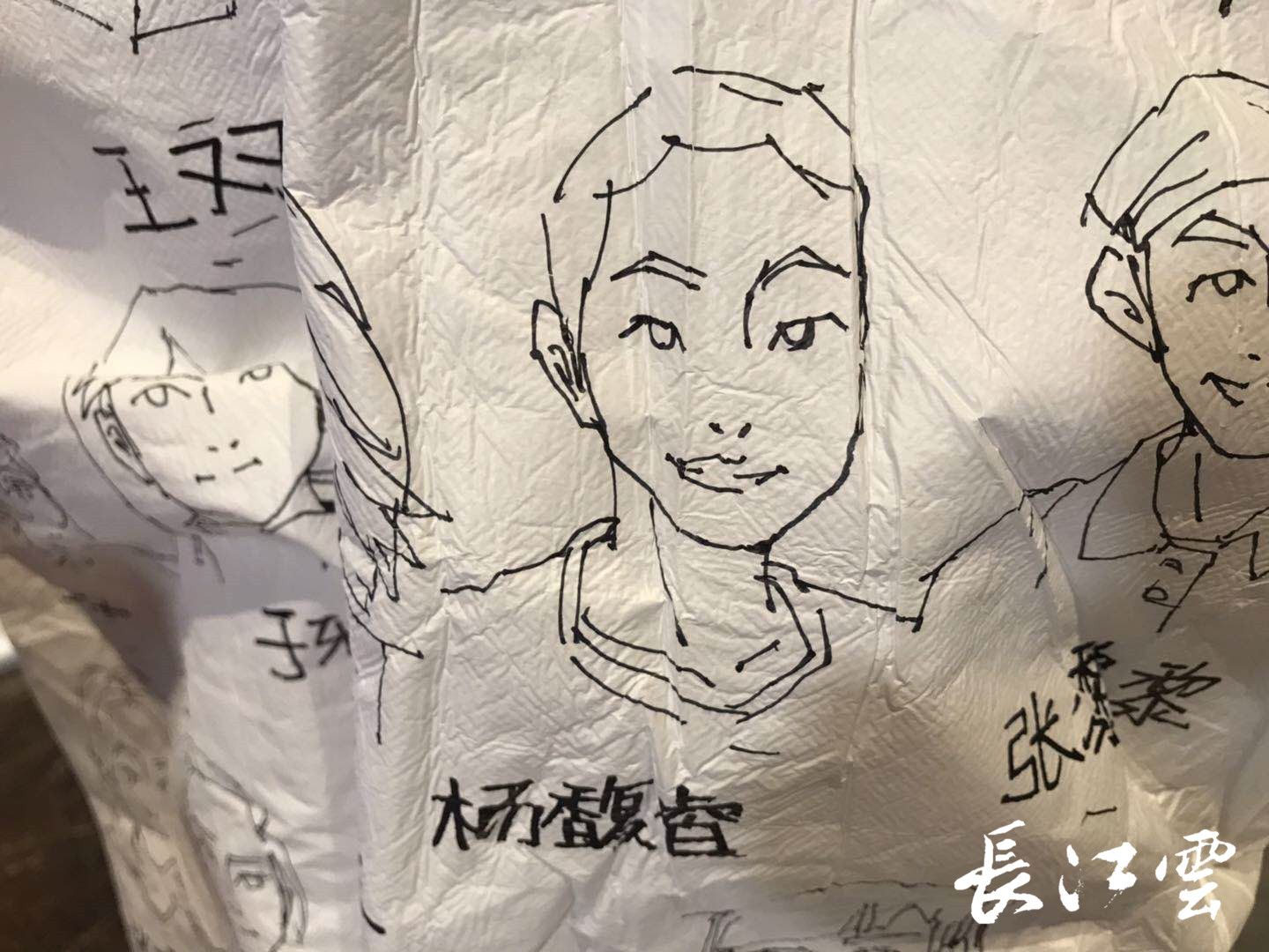一周前,参与医疗队员们所在酒店安保工作的关南派出所民警邹龙飞,和一直随警拍摄的武汉纺织大学传媒学院的教授金宜鸿老师,就开始琢磨和策划,随后金宜鸿找到自己的同事、传媒学院动画专业的叶科老师,电话商议将住在光谷丽顿酒店的辽宁医疗队的全体队员绘上防护服,制成“战袍”,叶科一口应承。这一提议也得到辽宁医疗队相关负责人的积极响应,辽宁医疗队的孙丽萍医生在一天之间将215名医护人员的照片收集齐全,并做好保密工作。