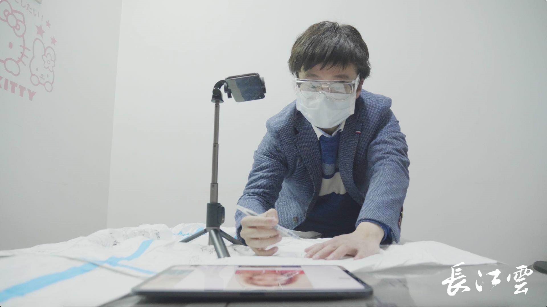在创作过程中,叶科根据照片认真揣摩每个人的形象特点,小到眉间、一根发丝,都要力求能够最生动的表现每一位医护人员的精神气质。叶科告诉记者,此次创作并非象以前在电脑上或者画纸上创作那般容易,防护服表面不平整,而且每件防护服上要画几十个人的画像,不能有一个出错,只能一气呵成。叶科从最初10多分钟画一个到最后能够2分钟画一个,经历了超常的创作难度,最终,当五件战袍完美现身于全体医护人员面前时,他说,这四个昼夜的努力值了!