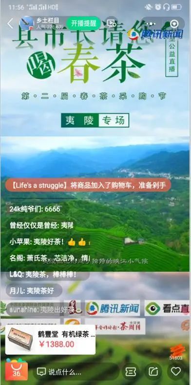 4月5日为湖北专场,宜昌市夷陵区、五峰县,恩施市等鄂茶重点产区的11位县市长,通过线上直播推介,为当地茶叶站台吆喝,运用直播这一新形式为茶农茶企解决卖难问题。同步腾讯直播、看点直播等多个平台进行,夷陵专场吸引了280万粉丝观看。