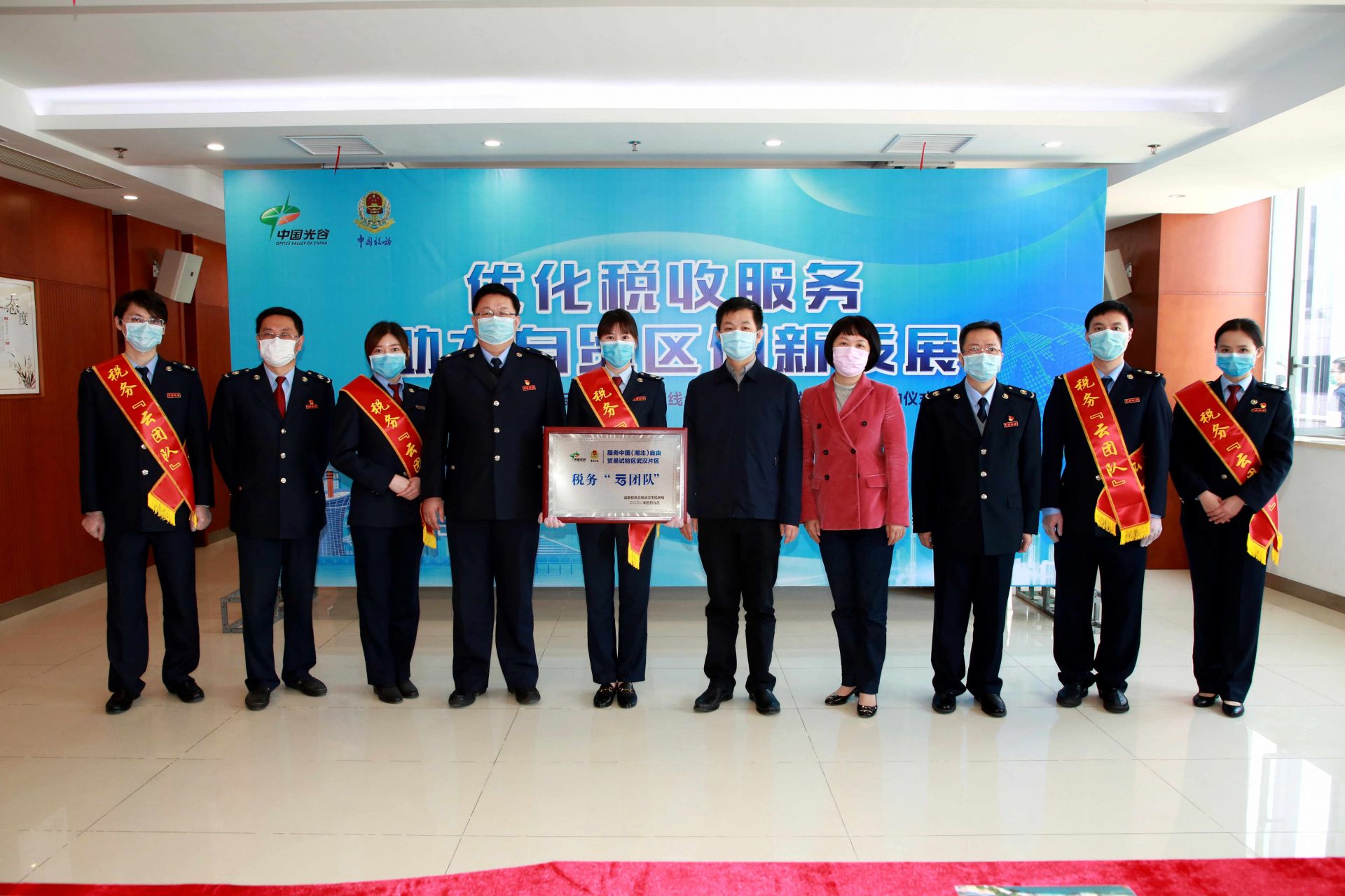 授牌现场,“云团队”负责人——武汉东湖新技术开发区税务局总经济师方波与企业代表华工科技产业股份有限公司签订税收“云服务”协议,这也标志着税收“云服务”率先在自贸区开局。