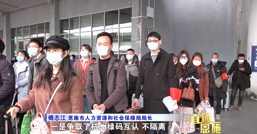 恩施市人力资源和社会保障局局长 傅志江:运送恩施籍返杭人员,一是争取了杭州绿码互认、不隔离;二是返岗人员乘车不付钱;三是返岗人员到岗到点,上岗不担心。