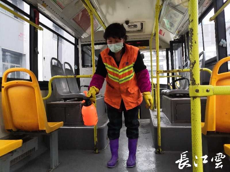 公交556路线长戴岚飞介绍,对于运营的每一台公交车,每一趟发车前,公交工作人员都要对车厢进行一次清洁消毒、开窗通风,并且对驾驶员进行体温检测,完成一趟运营后再次对车厢进行一次清洁消毒。每一次的清洁消毒操作中,都要对车厢的内壁板、内顶棚、地板、踏步、座椅、拉杆、扶手等部位,确保消杀无遗漏、无盲点。
