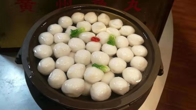 黄冈张大厨食品有限公司中国烹饪大师张彬团队制作的黄州手工鱼丸,其品种有桔瓣鱼丸、奶油鱼丸、三色鱼丸、空心鱼丸、桂花鱼丸、水晶鱼丸、海参鱼丸、什锦鱼丸等,2018年获“湖北名菜”称号,同年被黄冈市录入非物质文化遗产项目,同时张彬还走进外交部“新时代的中国·湖北,从长江走向世界”的冷餐会,深受各国外交官欢迎。