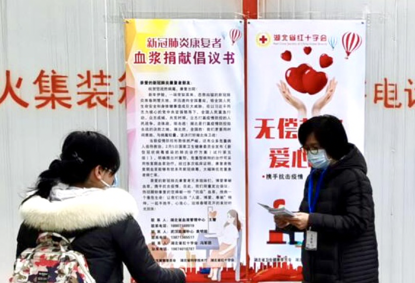 为满足临床救治工作需要,各地陆续开展了采集新冠肺炎康复者恢复期血浆治疗重症、危重症患者工作。湖北和武汉是新冠肺炎疫情防控的重中之重,众多危重病人亟待救治。2月21日,湖北省红十字会联合省卫生健康委员会、省科学技术厅发文,号召新冠肺炎康复者捐献血浆。在中国红十字会总会工作组的指导支持下,省红十字会积极行动,动员武汉地区相关业务协调员队伍,在武汉市内48家定点医院开展捐浆宣传;开通康复捐浆者心理支持平台,专项为新冠肺炎康复者提供心理支持;印制宣传展板、折页通过省内各新媒体平台宣传呼吁动员血浆捐献;配合卫健委血液管理部门,通过社区红十字志愿者在全省捐浆点、武汉地区方舱医院、康复者隔离点、社区等地投放宣传展板和折页,进行线下宣传;将协助中国红十字基金会开展捐浆者爱心礼包配送活动。截止到3月9日12时,全省共采集640人次,采集量230850ml,为危重症患者送去生的希望。