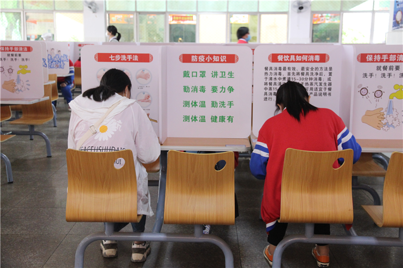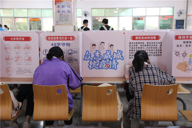 食堂餐桌隔板上印满防疫措施