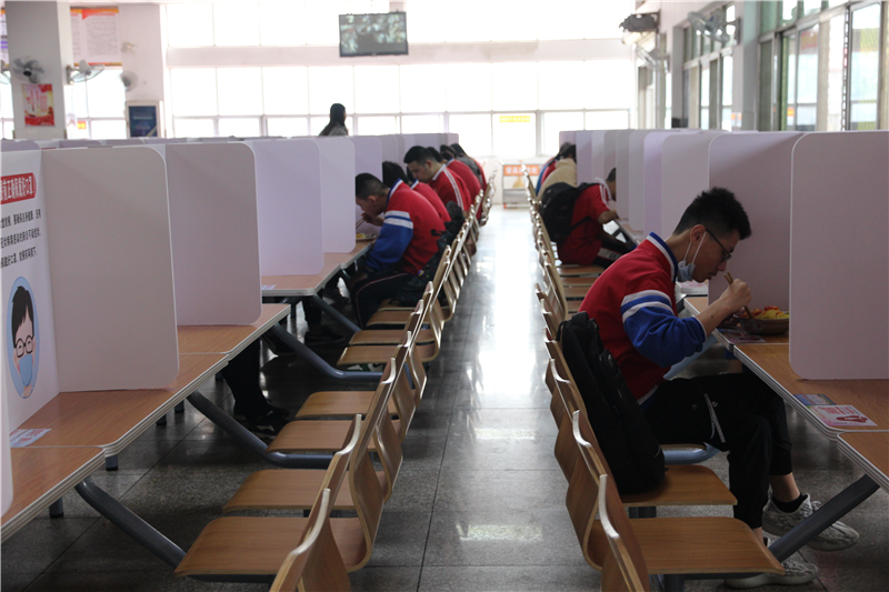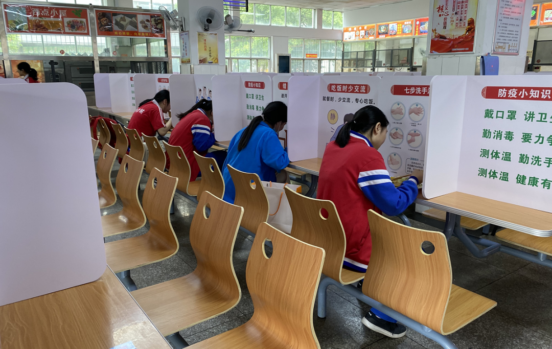 襄阳四中后勤处副主任陈国超表示,考虑到就餐学生人数较多,学校采取分散错时就餐模式,一部分学生在食堂就餐,一部分学生领餐后回教室就餐,减少人员聚集。