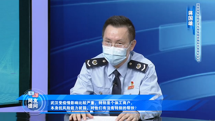 主持人:【B网友】提问:武汉受疫情影响比较严重,特别是个体工商户,本身抗风险能力就弱,对他们有没有特别的帮扶?
