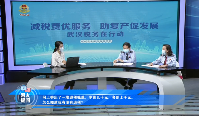 主持人:【D网友】提问:网上秀出了一堆退税账单,少则几十元,多则上千元。怎么知道我有没有退税?