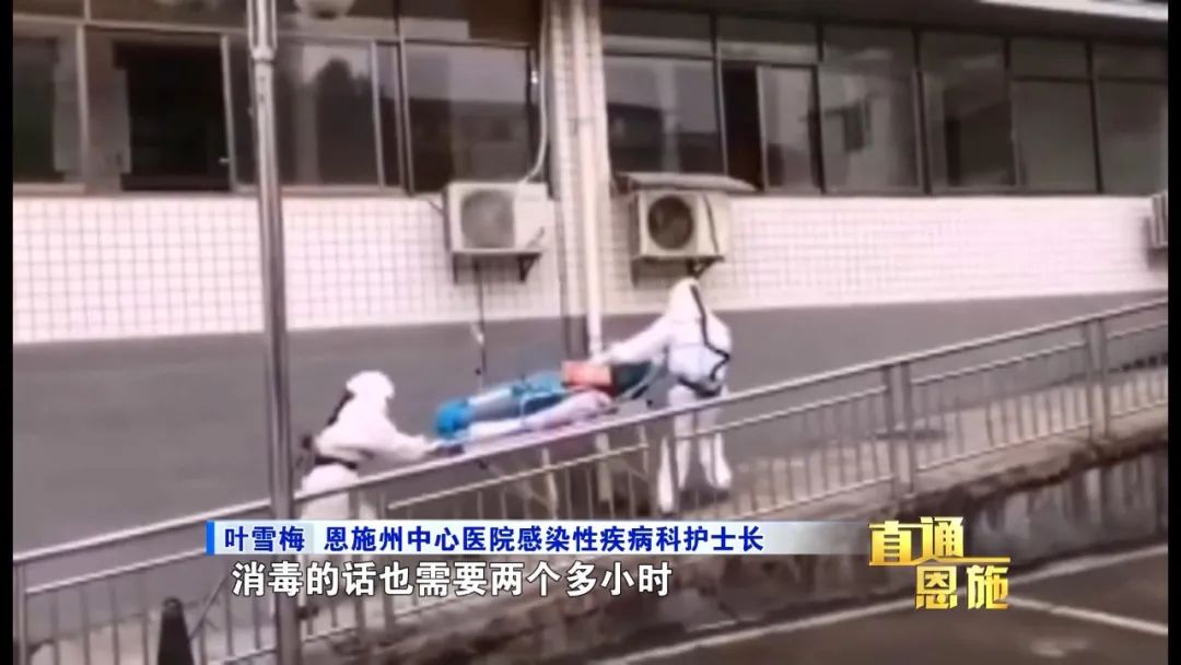 恩施州中心医院感染性疾病科护士长 叶雪梅:转运的病人是一个确诊的重症(患者),所以必须要有防护措施,要有正压呼吸器这些设备,消毒的话也需要两个多小时。所以在这方面和120协调到早上两点多钟。