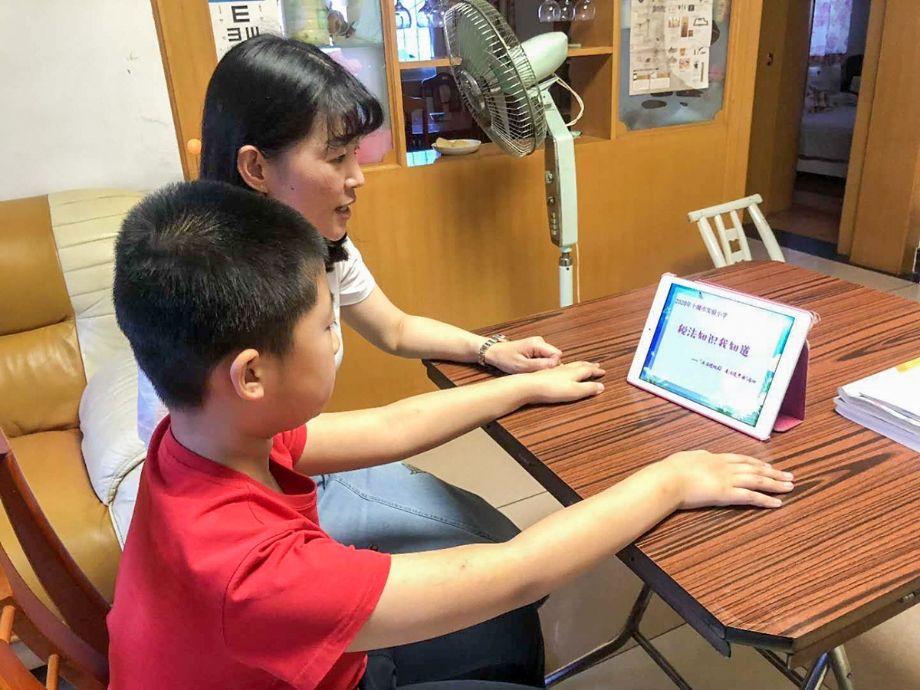 图为十堰市实验小学靳沛然与妈妈一起上税法课。