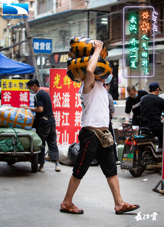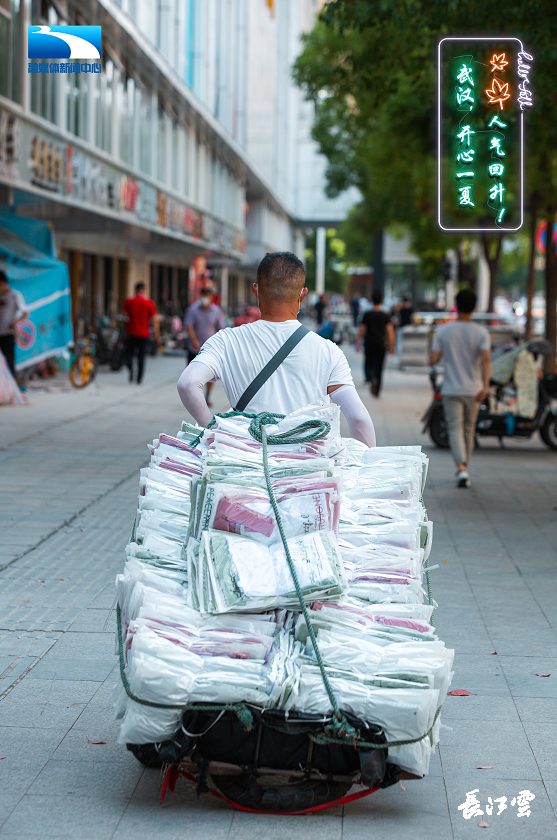 沉寂了一个春天的汉正街开始恢复生气。晒得黝黑的师傅们推着车一路小跑,互相隔着口罩打个招呼。在这个华中地区最大批发市场,汉正街一直是武汉服装行业的“晴雨表”,在这里的人们看起来依然忙碌又平静。