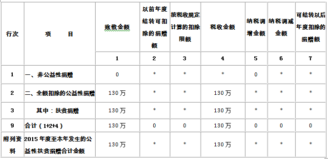 填写《捐赠支出及纳税调整明细表》(A105070)时,账载金额按照允许扣除的捐赠金额即公允价值填报,税收金额与账载金额一致,实现了扶贫捐赠的税前全额扣除。