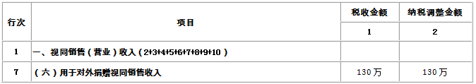 此案例,视同销售收入调增130万元,视同销售成本调减113万元,过A105000“其他”项目调减17万元,最终B企业所得税调整的结果为0。会计上记载的捐赠支出,企业所得税可以全额扣除。同时,视同销售收入增加了该企业在计算业务招待费、广告费和业务宣传费等费用扣除限额时的计算基数。
