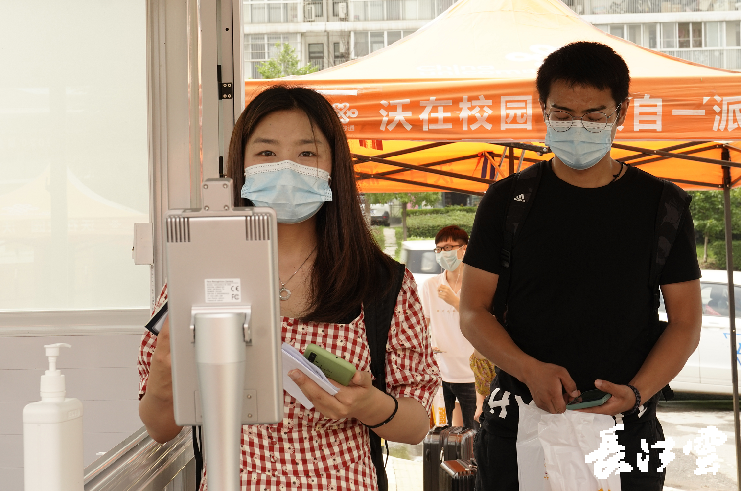 记者在校园看到,返校毕业生抵达学校后,现场工作人员立即引导同学们保持1.5米以上安全距离排队,查验健康码及核酸检测结果,有序通过专用通道。专用通道内安装有红外线测温设备,只需站在仪器前,便能自动获取学生的身份信息和体温值。同时,工作人员还会对学生的行李和进校车辆的外部进行消杀处理,保证不遗漏任何防疫细节。