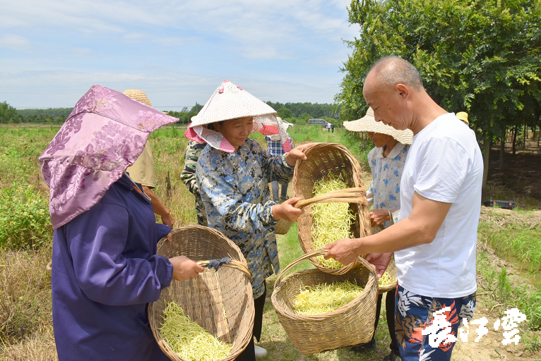 和刘在梅一样,梅花湾村四组村民周本华原来也是贫困户,老婆因病瘫痪在床30多年,父亲年迈多病刚去世不久,原靠种稻谷为生的周本华一家生活每况愈下。不等不靠的周本华,在扶贫工作组的帮助下,租用土地45亩开始尝试“虾莲共作”,同时又发展果树种植30多亩,2019年在村里的带动下发展金银花种植50多亩,并成立了梅花湾村金银花种植专业合作社。