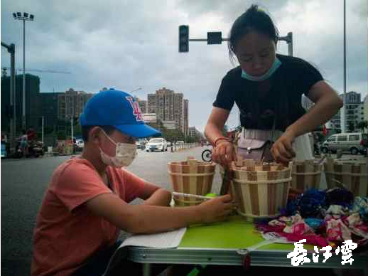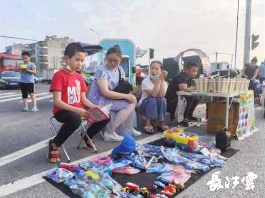 昨天(6月25日)下午,记者在黄陂前川的一个地摊前见到了齐耀晨,他和妈妈汪娟娟在这里摆地摊卖玩具和香包已经有一个多月了,随着疫情防控形势的好转,这里摆摊的人越来越多,被当地人称为“网红一条街”……